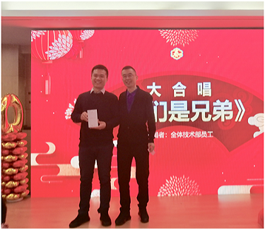 接下来进入节目汇演环节。我们依次聆听了可爱的猫咪曲《学猫叫》,意味深长曲《空城》《是否》,诗歌朗诵《唐诗里的中国》及《儿歌串烧》,观看了抖动舞蹈《抖起来》,美妙的《十级铃鼓》艺术体操,娱乐且励志的《四句半》,惬意的蒙古舞《故乡的草原》,优美绝伦的《芒种》舞,最后,技术部全体员工为我们带来大合唱《我的好兄弟》,声音洪亮而有力,看的出来我们技术部就是一帮好兄弟,是啊,人生难得兄弟爱,同心协力转成金,再创来年佳绩。