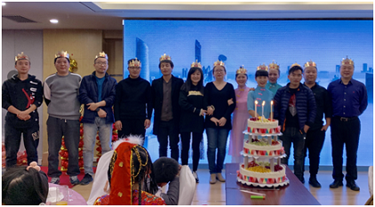 大家还在激动中,又开始进入抽红包赢大奖环节,听到抽到华为P30手机的幸运儿的欢呼声,金光闪闪的红包墙,人人有份,大家都摩拳擦掌希望能抽到更大的礼品红包……在一派喜庆祥和的氛围中,又迎来了本季员工生日Party,寿星们上台,带上幸福的生日帽,伴着大家的美好祝福,幸福洋溢。随后晚宴开始,播放着《难忘今宵》大家谈笑欢声、举杯畅饮,觥筹交错间还有领导们一次次突袭的手机红包雨时不时掀起一阵阵欢笑声。