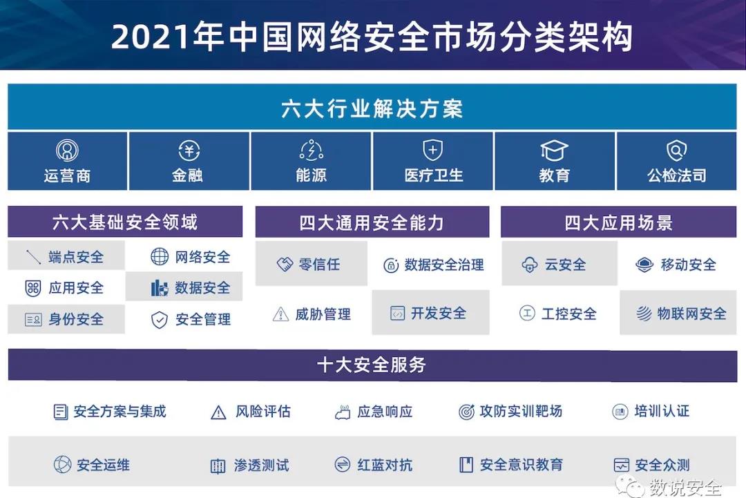 这些厂商长期专注于网络安全产品与技术的研究,既是网安各细分赛道中的领先者,也是未来引领产业发展的重要力量。下面就让我们一睹数说安全推荐的2021年中国网络安全市场全景图入围品牌吧!