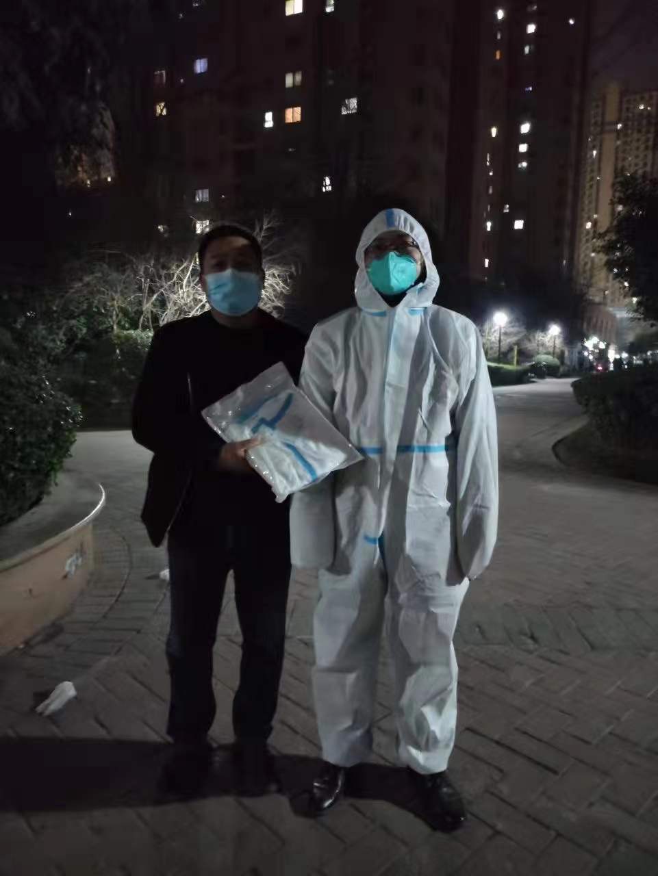 技术运维部运维工程师耿明磊:协助小区医护人员进行扫码、登记及运送分发物资。