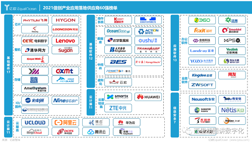 图:2021信创产业应用落地供应商60强榜单(来源:亿欧)