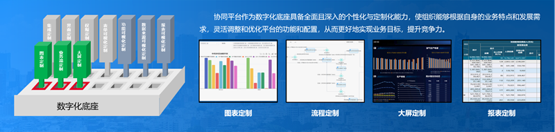 协同平台作为数字化底座具备全面且深入的个性化与定制化能力,使组织能够根据自身的业务特点和发展需求,灵活调整和优化平台的功能和配置,从而更好地实现业务目标,提升竞争力。